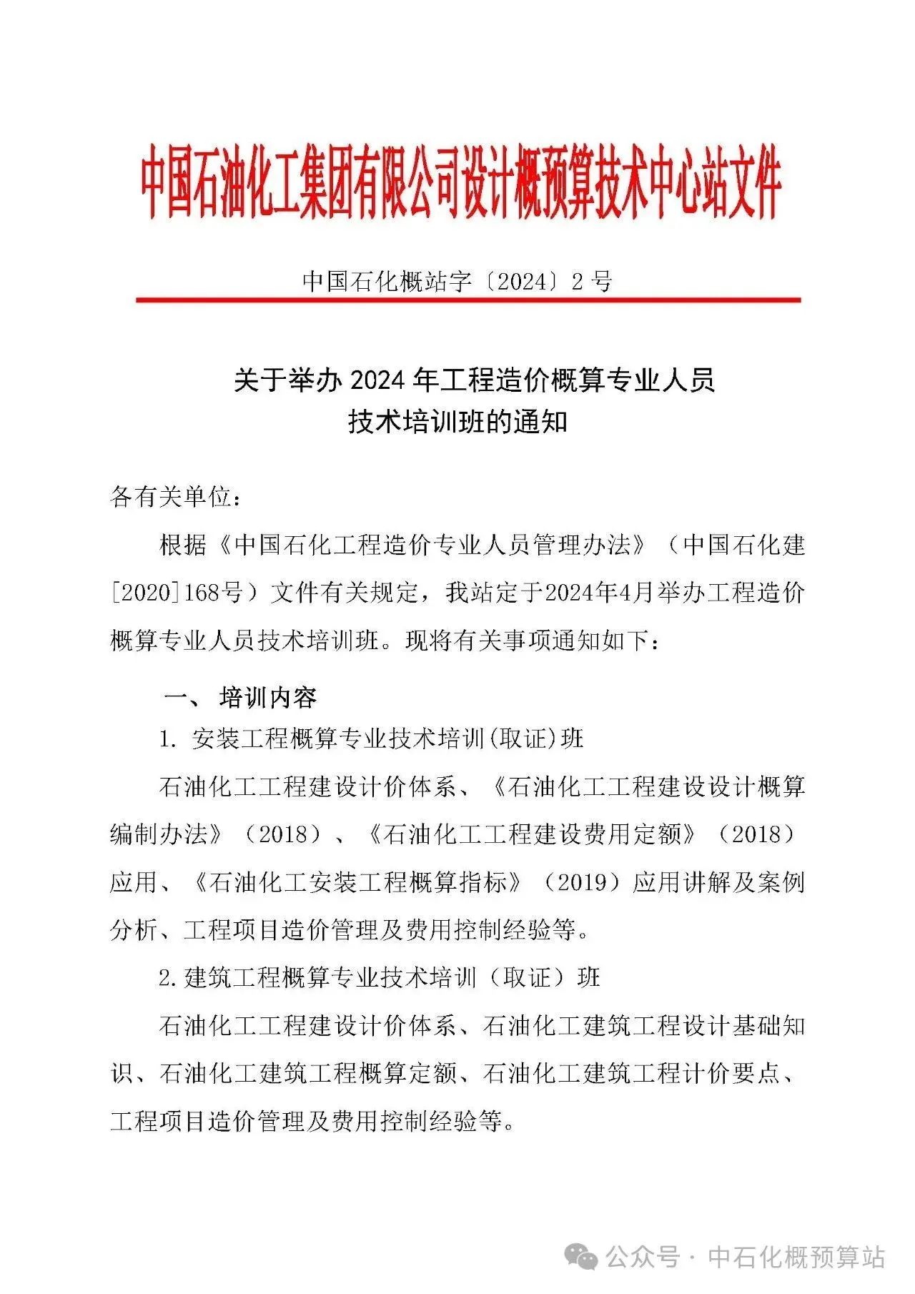 关于举办2024年工程造价概算专业人员技术培训班的通知